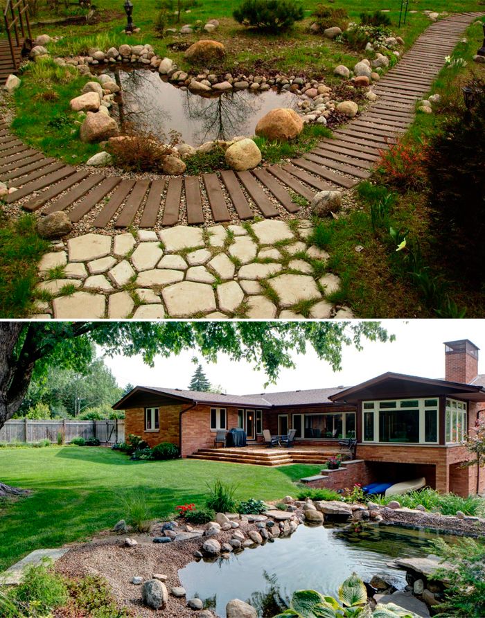 Една градина не би била градина без воден елемент. Езерце, голяма купа, фонтан - каквото си представите, ще се впише в скандинавския пейзаж. Езерца с неравни брегове, камъни и плавеи са за предпочитане - всичко трябва да хармонизира с останалата част от градината.