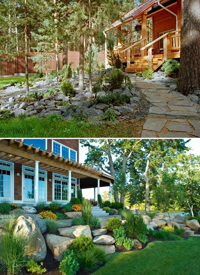 Тази градина не би била пълна без алпинеум. Той е от съществено значение, в края на краищата, Скандинавия е всичко за масивни планини, скалисти скали и зеленина. Този декоративен елемент трябва да изглежда естествено, сякаш паветата и камъните са били там от векове.
