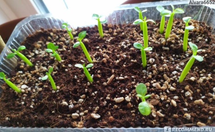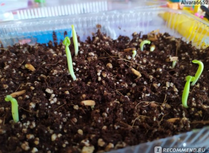 Температурата на покълване е 30-35 градуса по Целзий. Това е от решаващо значение, в противен случай семената просто няма да покълнат. Ето защо е най-добре да се сеят през студения сезон, когато централното отопление е топло. Моята оранжерия със семената беше разположена на радиатора и измерих необходимата температура с обикновен дигитален термометър.