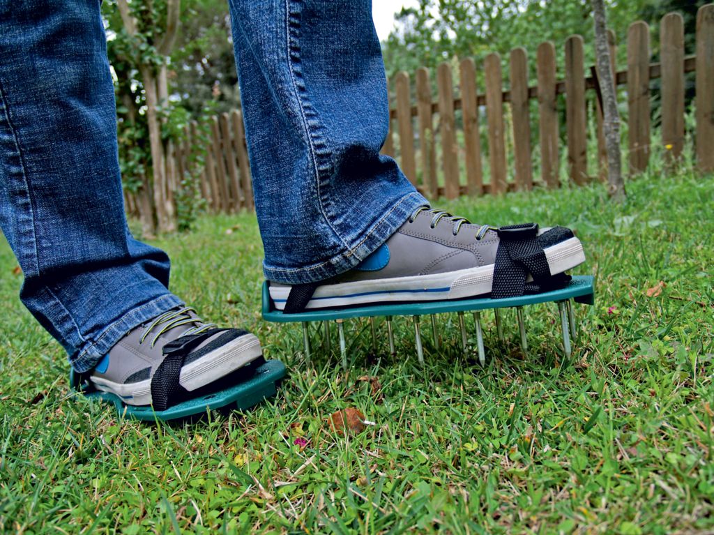 - аераторни подметки, където зъбите са прикрепени към долната част на обувките, за да ви помогнат да ходите по тревата;
