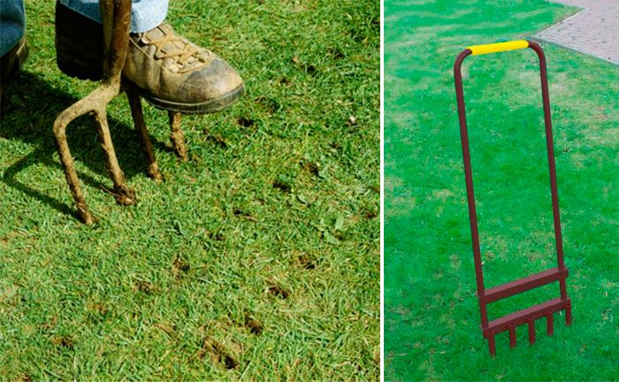 В основата си аерирането е разрохкване. Следователно, всички устройства за манипулиране на почвата са оборудвани с шипове с дължина до 15 см или кухи тръби с дължина 15-20 мм за изместване на почвата.