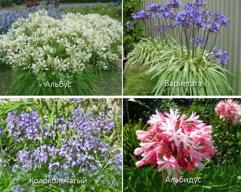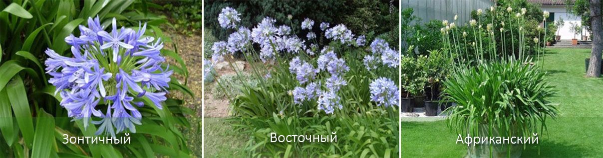 Най-разпространеният, Agapanthus umbellatus, е прародителят на всички останали сортове. Оригиналният цвят е син. Синият агапантус (Agapanthus Blue) от този вид, благодарение на ярките си, небесносини цветове, е най-търсен за декоративни цели. Не е много висок (до един метър), но има дълги, твърди листа и двусантиметрови камбанковидни съцветия. Отличен е както за тревни площи, така и за компактно отглеждане на закрито.