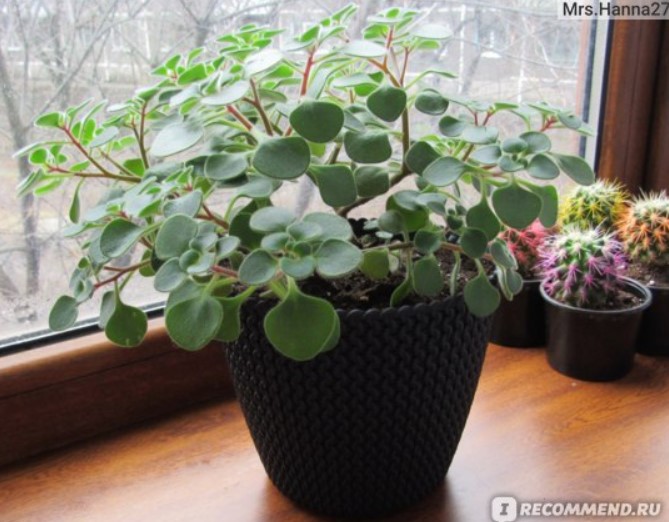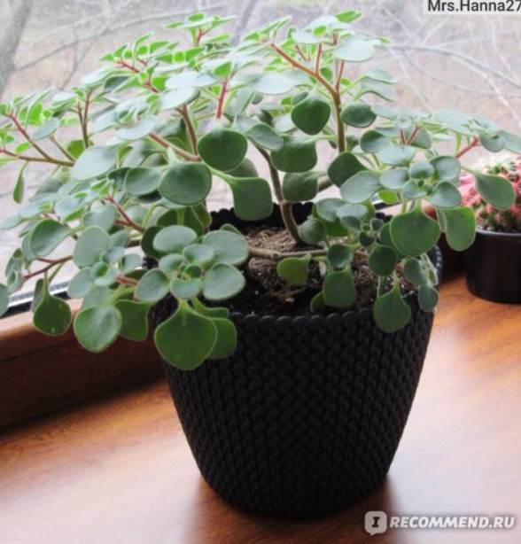 Стъблото е леко разклонено, с противоположни, закръглено-яйцевидни листа, наподобяващи сърца (оттук и прякорът „дърво на любовта“), покрити с малки, светли власинки. Цветът е тъмнозелен, понякога с червени, бели и жълти петънца. Когато е повредена, листата излъчват характерна миризма.