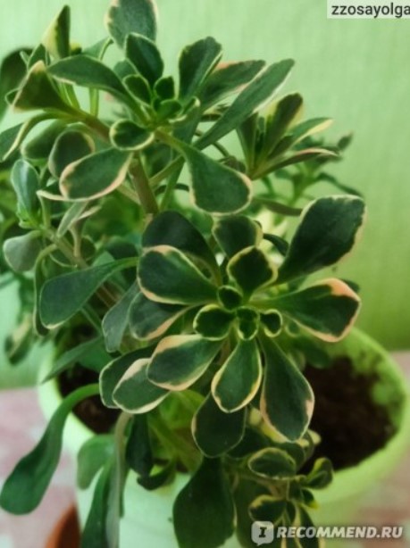 Но те са много красиви: самите листа са зелени, с бяла рамка по върховете.Ако поставите айшойсона под лампа, цветът на канта ще стане розов.