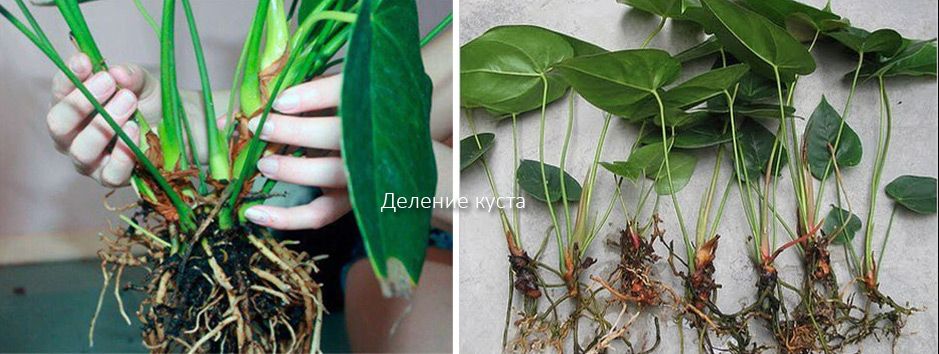 Първите два метода се използват през пролетта по време на ежегодното пресаждане. Корените се отделят с остър нож, като отрязаните места се поръсват с натрошен въглен. Пресадените растения се поливат внимателно, като се внимава да не се преполиват.