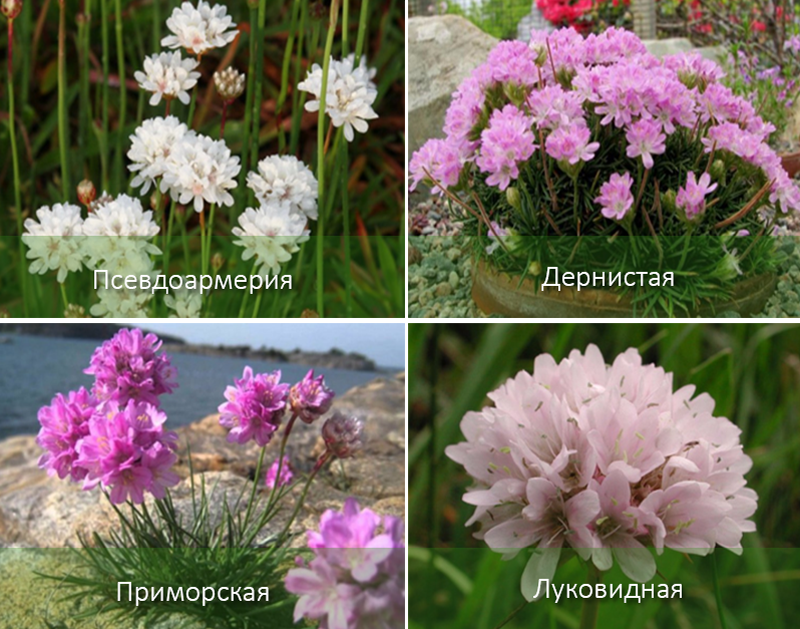 Има повече от 10 разновидности на армерия, широко използвани за градинска декорация, но следните са най-подходящи за централна Русия: