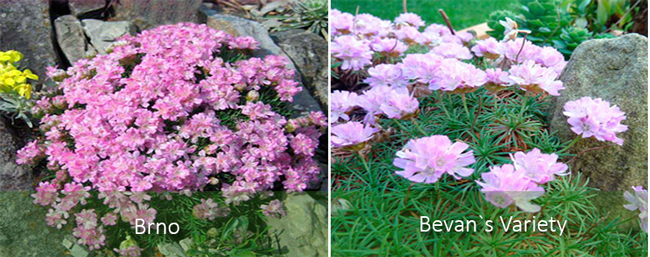 | Разнообразието на Беван | Базалната розетка е приблизително 20 см. Храстът е 150 мм. Листата е тясна и линейна. | Светло розово. |
