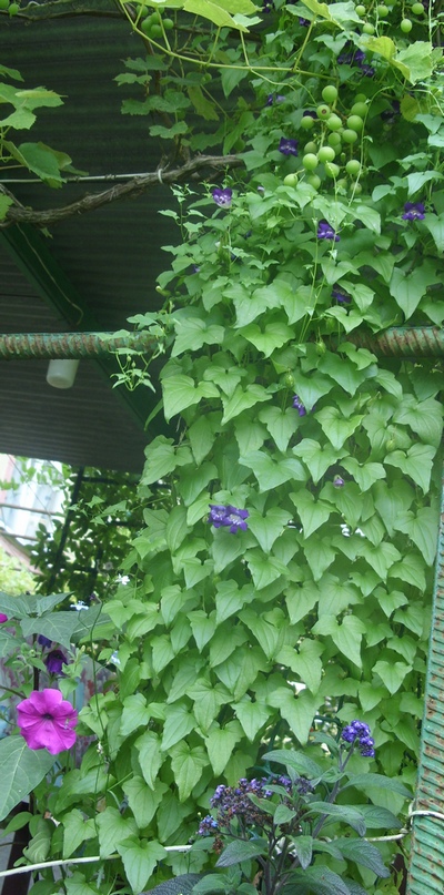 Тя бързо построи пергола с височина над 2 м и се изкачи по гроздовата пергола до 6 м. Цъфти много дълго време, докато слана от -5 градуса не я замръзне.