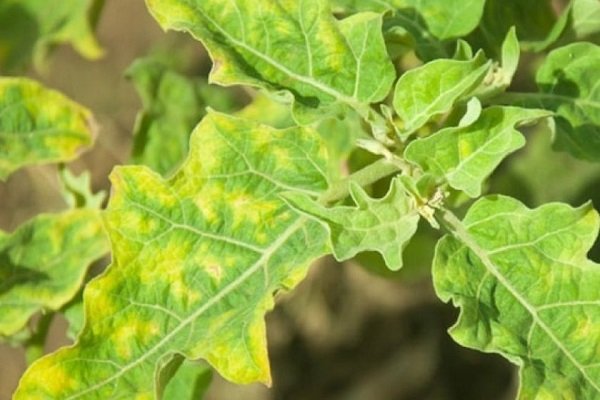 - Естествено пожълтяванеСреща се по долните листа на патладжаните след трансплантация.