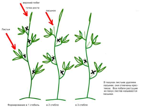 Всички листа и яйчници, разположени под 3-4 листа, се отстраняват от стъблото.