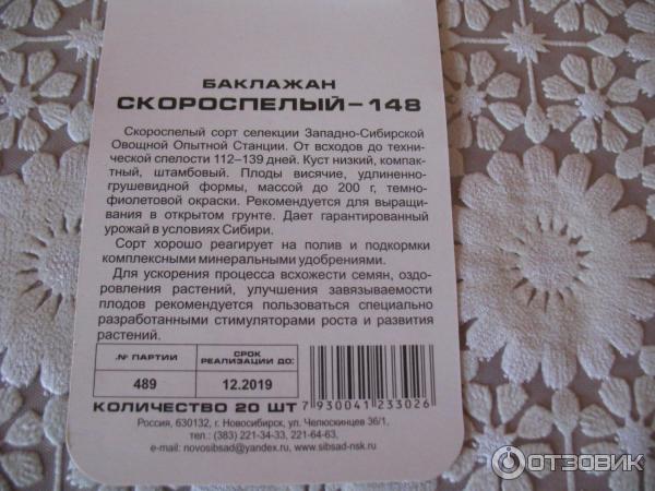 - 2.21 Сорт патладжан Сибирски ранозреещ 148