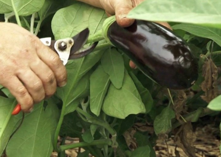 Патладжаните трябва да се отрежат заедно със стъблото с помощта на остри ножици за подрязване; по-добре е да не правите това на ръка, тъй като съществува висок риск от увреждане на растението.
