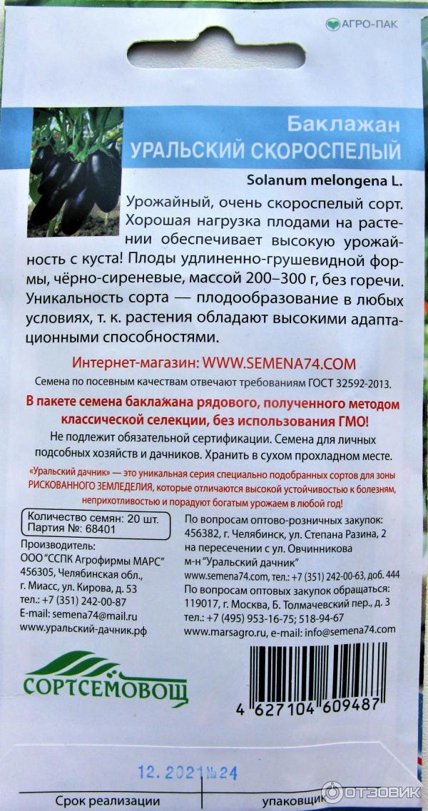 - 2.25 Уралски ранозреещ сорт патладжан
