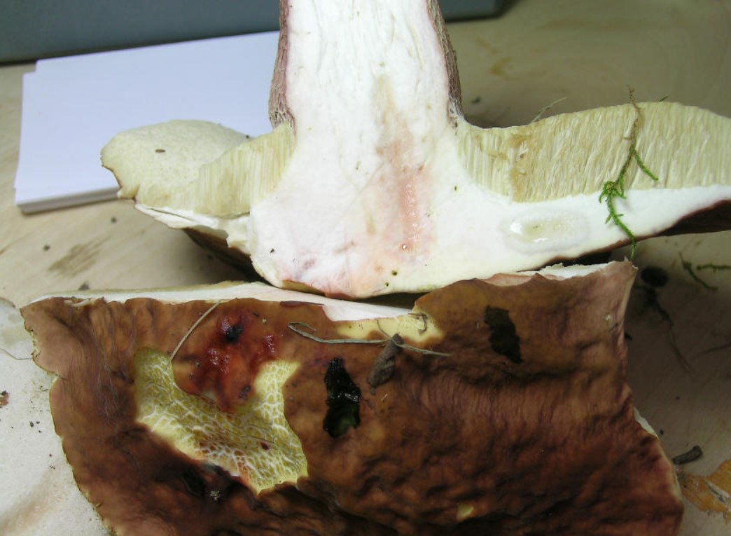 Месото е белезникаво. Не променя цвета си, нито се зачервява при разрязване. Поради горчивия си вкус, не съдържа червеи. Няма специфична миризма.