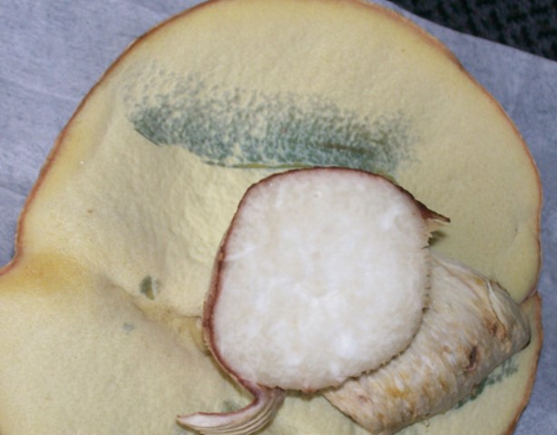 | Описание | Шапката е сравнително малка, често напукана, бледокафява или светло охра без червеникав оттенък. |