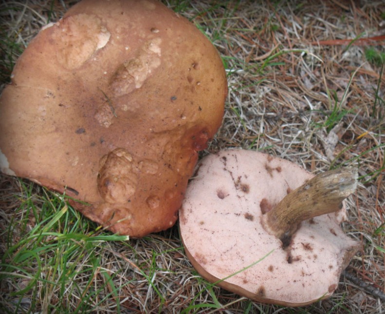 | Описание | Шапката е дълга до 25 см. Често е с неравномерно оцветяване с песъчливи и кафяви петна. Дръжката е бежово-розова отгоре, кафеникаво-кафява отдолу с едва забележима воднисто-бяла мрежа. Месото става розово при разрязване, но дръжката остава непроменена. |