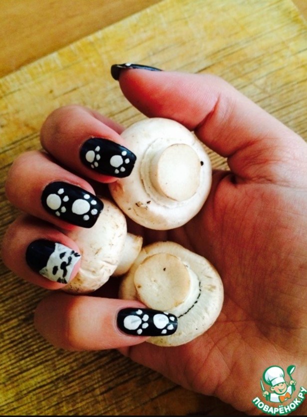 По-добре е да вземете малки гъби, като на снимката, за една хапка (в същото време показах маникюра си)