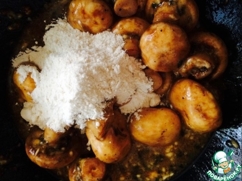 - Можете да добавите брашно към пресоления гъбен сос; това ще помогне за коригиране на ситуацията.