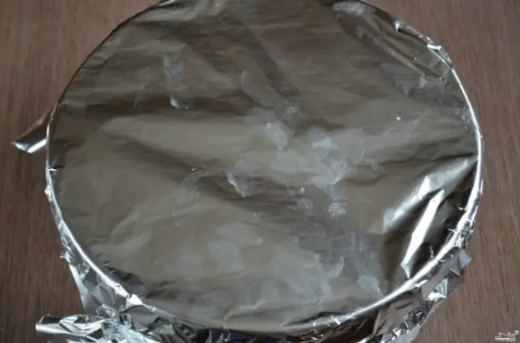 След това използвайте фолио, за да направите малка тенджерка, поставете тестото вътре, придавайки му желаната форма, и печете във фурната за 15 минути.