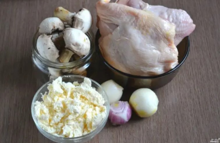 Сол, черен пипер: на вкусПригответе всички необходими съставки. Предварително обелете лука и гъбите. Моята сметана беше леко замразена, но не я размразих и така се получи още по-добре.