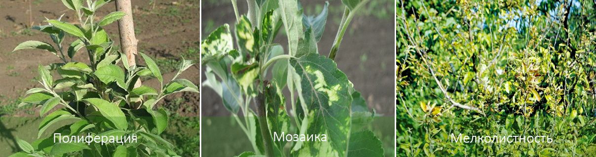 | Дребнолистна (розетка) | Листата стават груби, често къдрави и малки. Ябълковото дърво не цъфти. | |