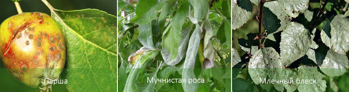 Пътища на инфекция: висока влажност и мека зима, увреждане на кората. Симптоми: малки кафяви петна по листата (появяват се в началото на май), които стават по-светли до края на лятото. През есента отстранете падналите листа, изкопайте почвата и напръскайте ябълковите дървета с урея. Третирайте с фунгициди през пролетта.