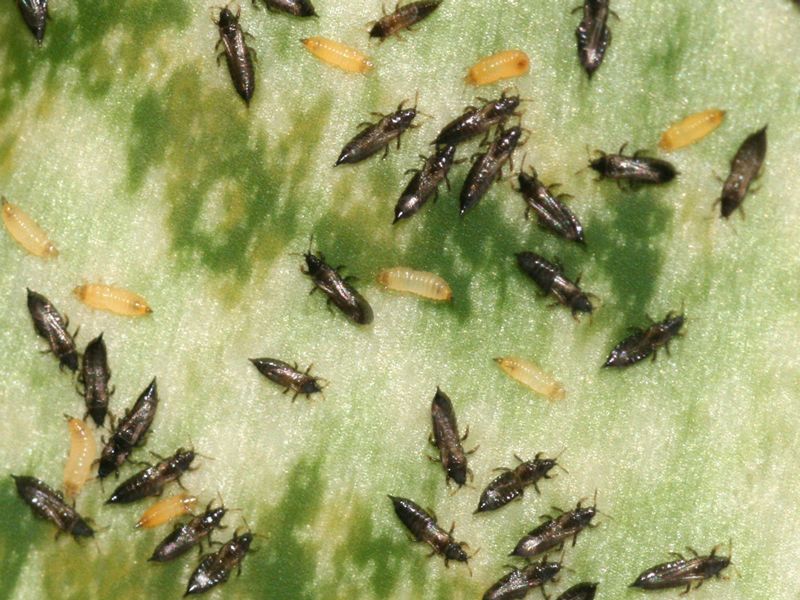 Трипсите имат много кратък живот, само около три седмици. Но се размножават толкова бързо, че могат мигновено да заразят растението. Основната им опасност е, че пренасят вируси, които причиняват заболяване, наречено петнисто увяхване.
