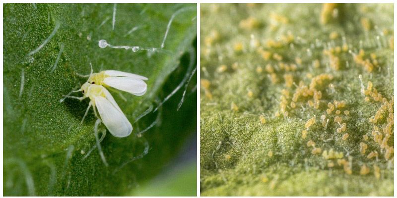 Тези летящи насекоми представляват най-голямата опасност за културите. Възрастните белокрилки пренасят огромен брой вируси и инфекции, разпространявайки ги от домат на домат. Ларвите, отложени от долната страна на листата, започват активно да поглъщат растителна тъкан и да се хранят със сока ѝ.