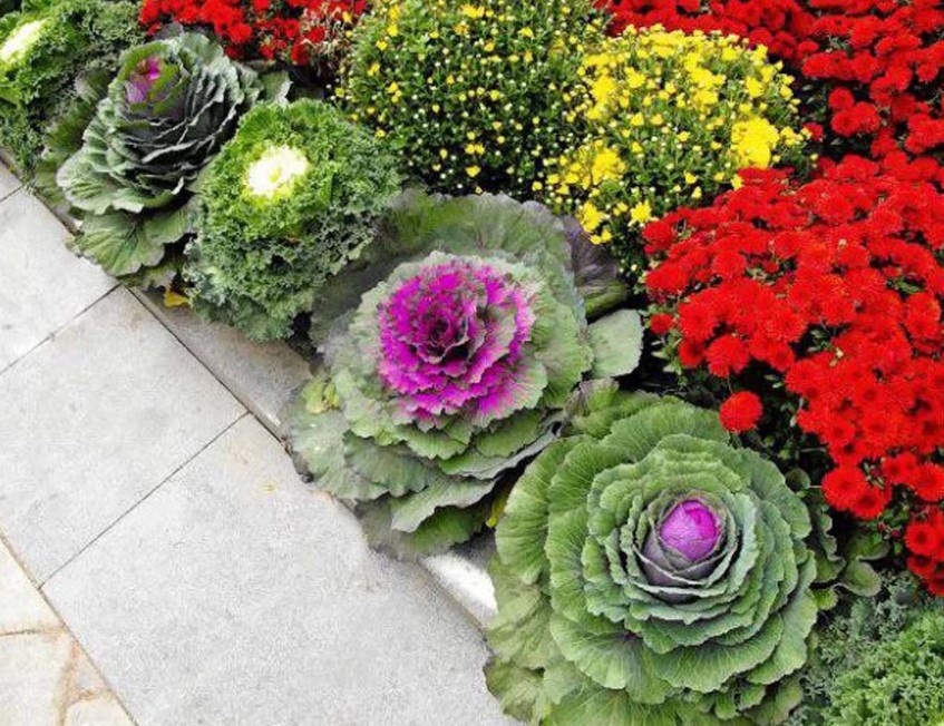 Полезен съвет! Декоративното зеле развива интересна форма и ярък цвят с наближаването на есента. Ако се засади редом с луковични растения, които не изискват изкопаване след цъфтежа, цветната леха ще изглежда привлекателно през целия сезон.
