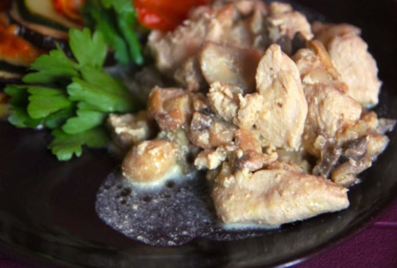 Шампиньони и пилешко филе
