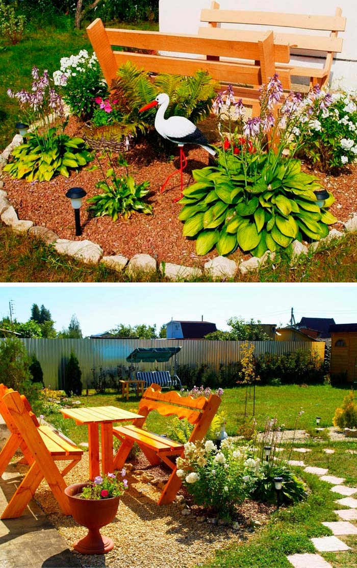 Ако имате вертикално пространство, предлагаме да го увеличите максимално. Можете да прикрепите саксии към стълбове, да окачите фенери или да ги покриете с бръшлян. Стените на сградите могат да се използват за поддържане на сенник или красиви саксии за цветя, а декоративните възможности за стар пън са безкрайни!