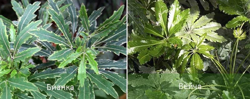 | Бианка | Тъмни до пет лоба, жилките им са лилави, с кремава рамка. |