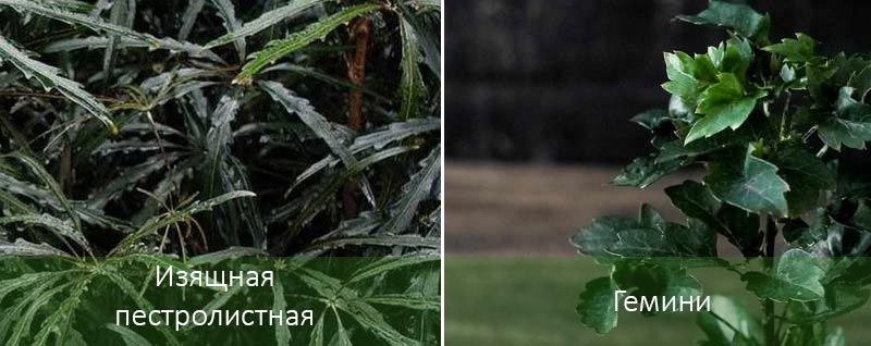 | Грасилима | Широки, вълнообразни, тъмнозелени листа без ясно изразени жилки. Нискорастящ сорт. |