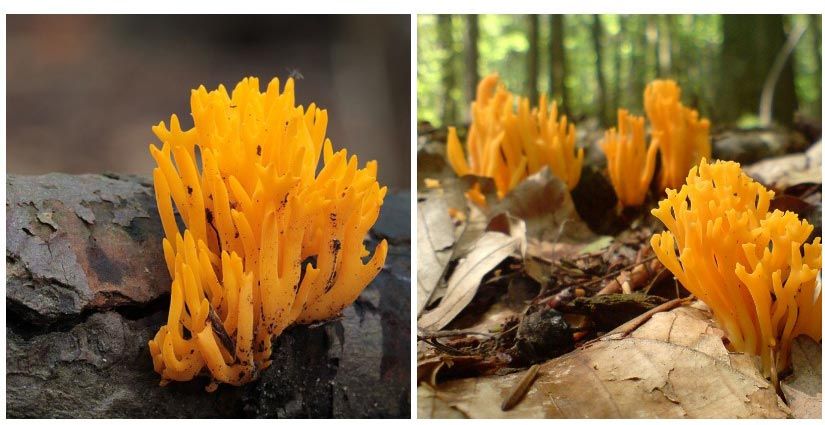 Калоцерата силно наподобява корал, на места ярко жълта и оранжева. Достигайки дължина от 6 см, роговидите придатъци се сливат в основата, създавайки „букет“ от цветя. Тези израстъци паразитират върху гнила дървесина и се размножават през цялото лято.