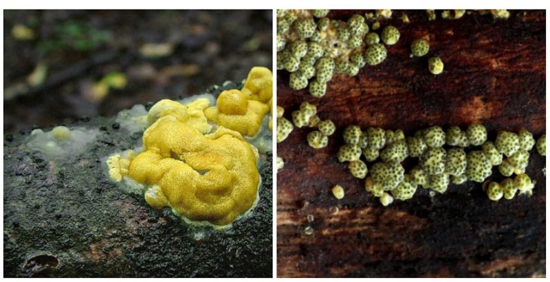 Сравнително рядка, малка, жълта овална гъба (до 0,5 см). Вирее във вода, влага и гниещи иглолистни пънове, така че при сухо време се крие в кората на мъртва дървесина, сякаш се разпростира и сплесква.