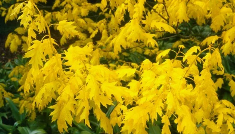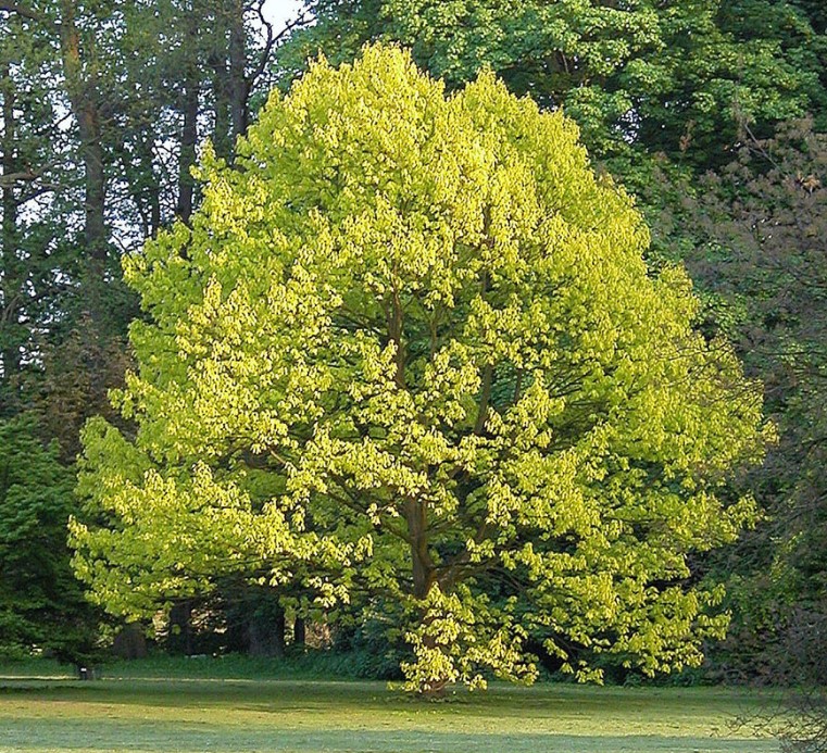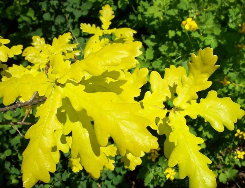 Листа: Те се открояват с необичайния си цвят: през пролетта са златистозелени с лимонов оттенък, постепенно стават зелени, но винаги запазват светъл цвят.