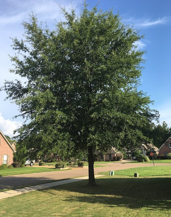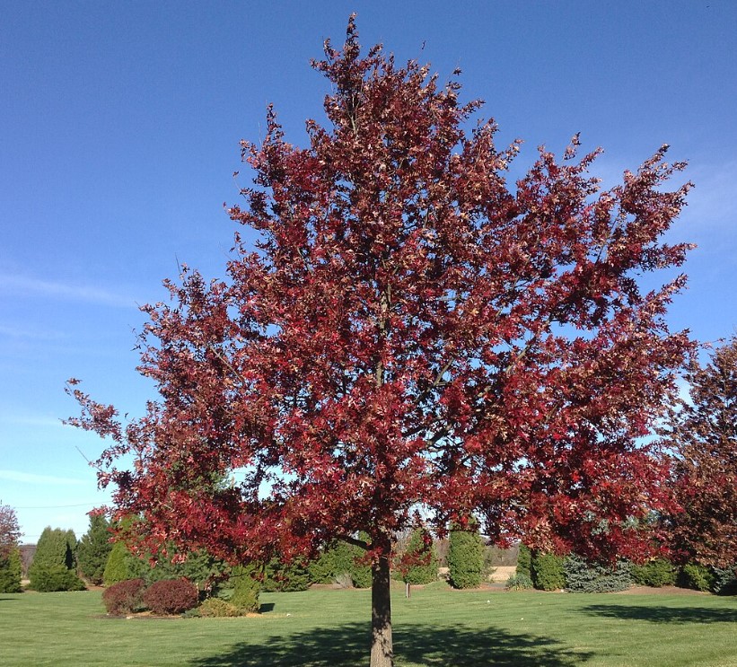 | Няма. Наречен на геолога Бенджамин Франклин Шумард (1820–1869). | Външен вид: Широколистно дърво с дълбоко напукана кора, чийто цвят варира от тъмносив до тъмнокафяв. Листа: Листата, състоящи се от 5-9 дълбоко нарязани листа, имат широко разположени дялове и назъбени върхове. Отгоре са голи, а отдолу леко опушени по жилките. Формата им може да варира от овална и широко овална до обратнояйцевидна, а размерите им варират от 8 до 20 см дължина и от 6 до 15 см ширина. Зона на разпространение: Разпространен е в цяла източна Северна Америка, включително южната част на Съединените щати и канадската провинция Онтарио. Това включва Алабама, Арканзас, Вирджиния, Джорджия, Западна Вирджиния, Илинойс, Индиана, Канзас, Кентъки, Луизиана, Мисисипи, Мисури, Мичиган, Мериленд, Небраска, Охайо, Оклахома, Пенсилвания, Северна Каролина, Тенеси, Тексас, Флорида и Южна Каролина. |