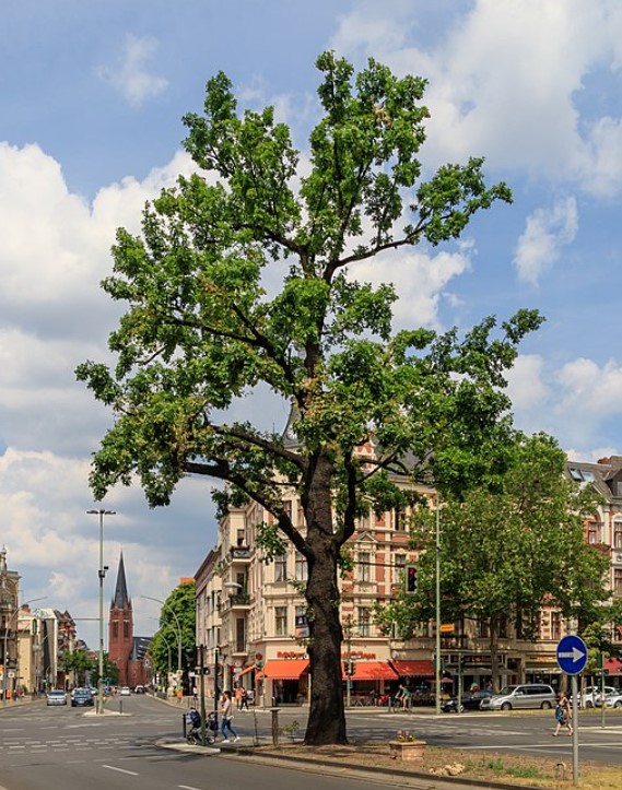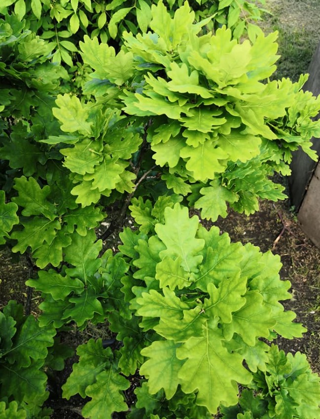 | Уелски дъб | Външен вид: Широка, висока корона плътно покрива ствола. Правият, здрав ствол се издига към небето. Лъскавите маслиненосиви издънки носят остри, яйцевидни пъпки. Листа: Наситено тъмнозелено, лъскаво отгоре, светло отдолу. През есента се появяват златистожълти и кафяви тонове. Обратно яйцевидни или продълговато-овални, с 5-7 дяла по краищата. Дължина 8-12 см, ширина 5-7 см. Дръжка до 1,6 см дълга. Разлагат се бързо, намалявайки киселинността на почвата. Плодове: Жълъди на къса дръжка, групирани на няколко парчета, отчасти в чашка. Коренова система: Мощен, проникващ дълбоко в земята. Основен корен през първите 30-50 години, след това странични корени. Разпространение: Европа, Кавказ, Западна Азия. Предпочитания: Влажен въздух, умерени зими, умерено сухо лято. Равнини, планини (до 700 м, в Алпите до 1500 м). Интересни фактиСтарите дъбови дървета често биват удряни от мълнии. РастежУстойчив на суша и топлина, расте добре и в градски райони. Може да бъде податлив на късни слани. Расте добре след резитба. |