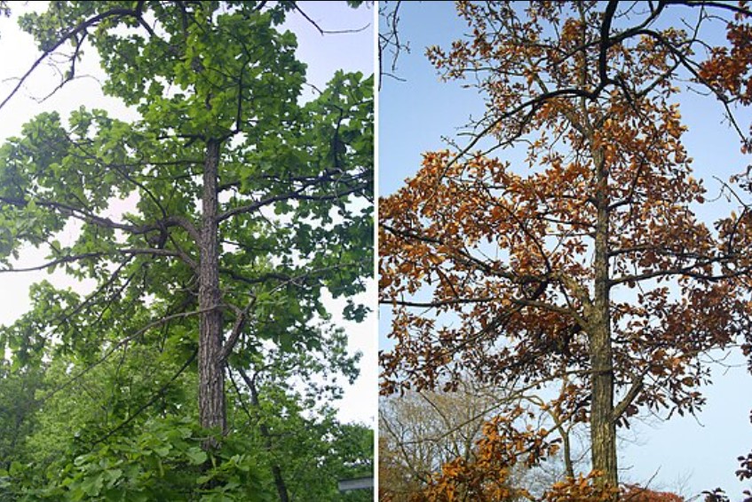 Струва си да се отбележи, че някои видове дъбове са вечнозелени, което означава, че кожестите им листа остават на дървото в продължение на няколко години.