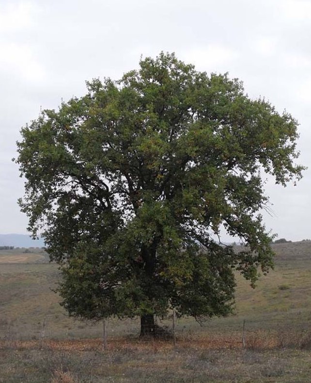 | Не | Външен вид: Нелинеен ствол с вълнообразни извивки, разперени клони, образуващи гъста корона. Листа: Различни по форма и размер (5-10 см). 4-8 тъпи или заострени лобчета. Отгоре тъмнозелени, отдолу сиво-зелени и опушени. Плодове: Елиптични жълъди (1-1,5 см) с опушена купула. Разпространение: Южен Крим, Северно Закавказие, Южна Европа, Мала Азия. Особености: Ксерофит (устойчив на суша). Расте върху варовикови скали. Образува редки гори. Интересен факт: Един от най-старите видове дъб в Европа. |