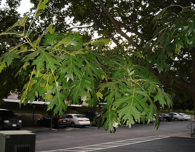 Листа: С правилна форма, със заоблени дялове, достигащи до 18 сантиметра дължина. Светлосиви отдолу, тъмнозелени отгоре. През есента стават червени и след това окапват.