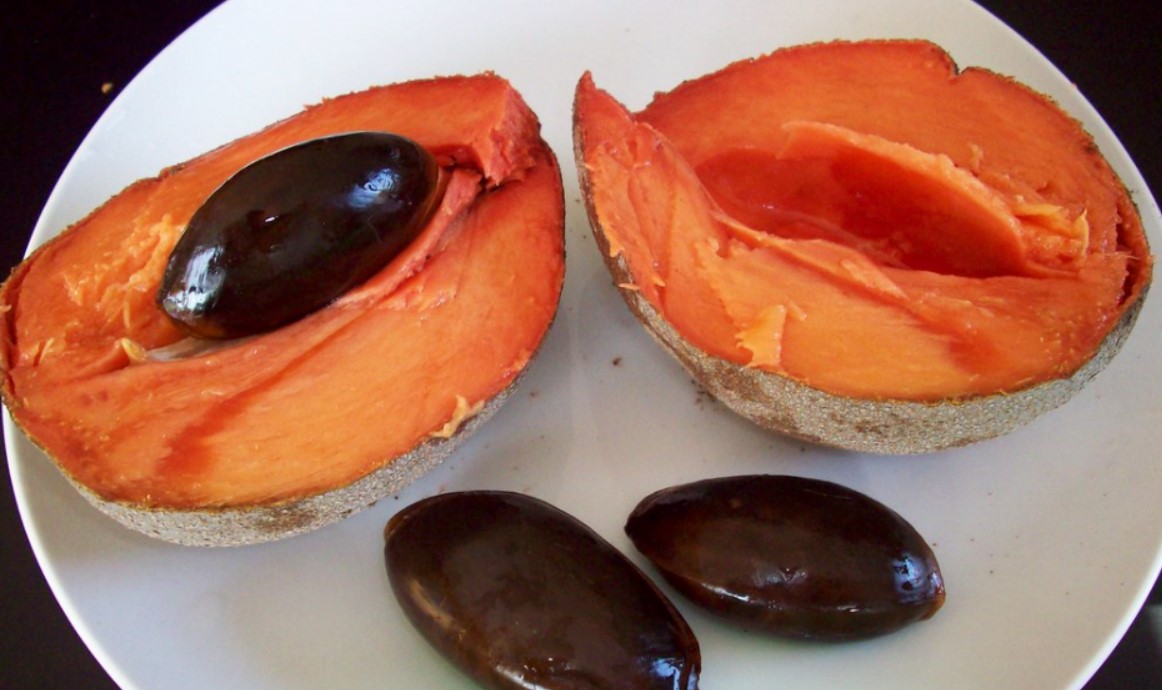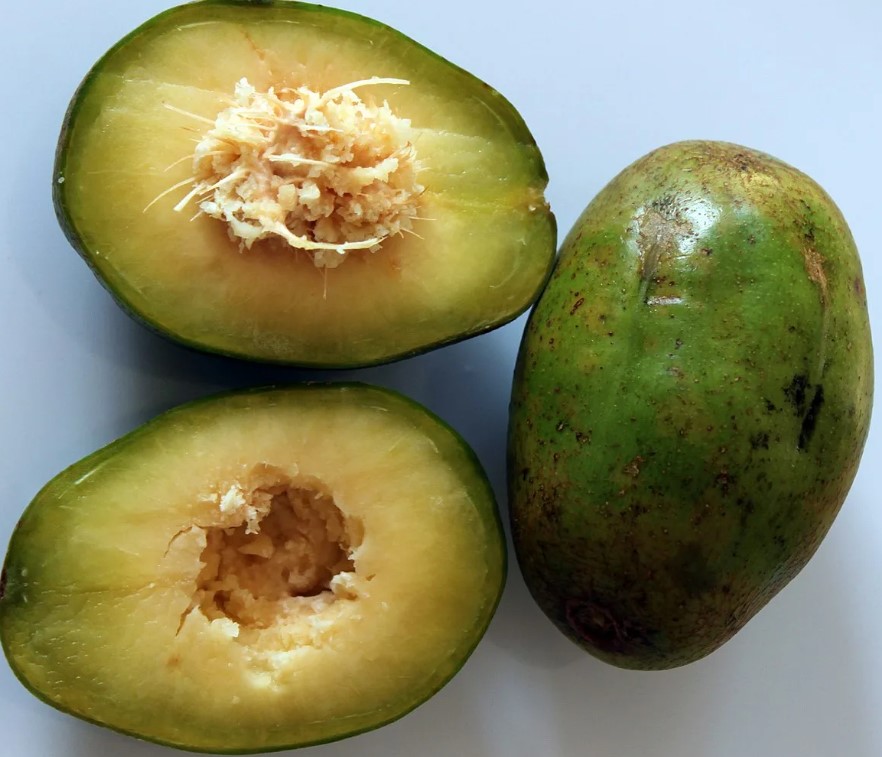 | Вкус | Зрелият плод има мек, кремообразен цвят. Има уникален вкус, който е трудно да се опише. Липсват му изразени нотки на сладост, киселинност и горчивина. Въпреки това, мнозина казват, че има вкус, донякъде наподобяващ орехи. |