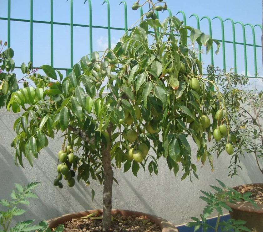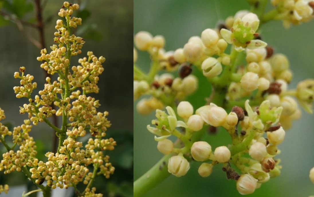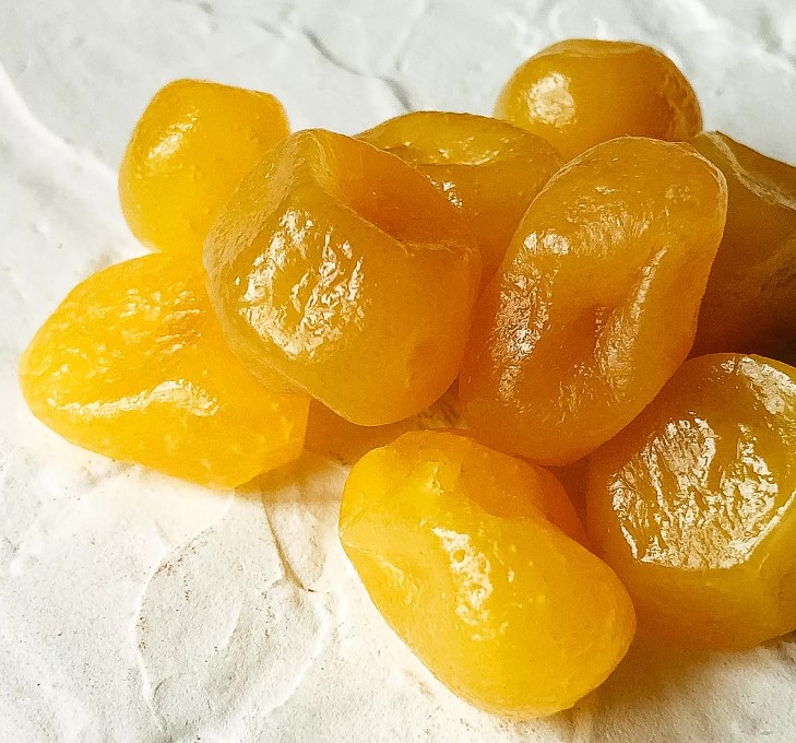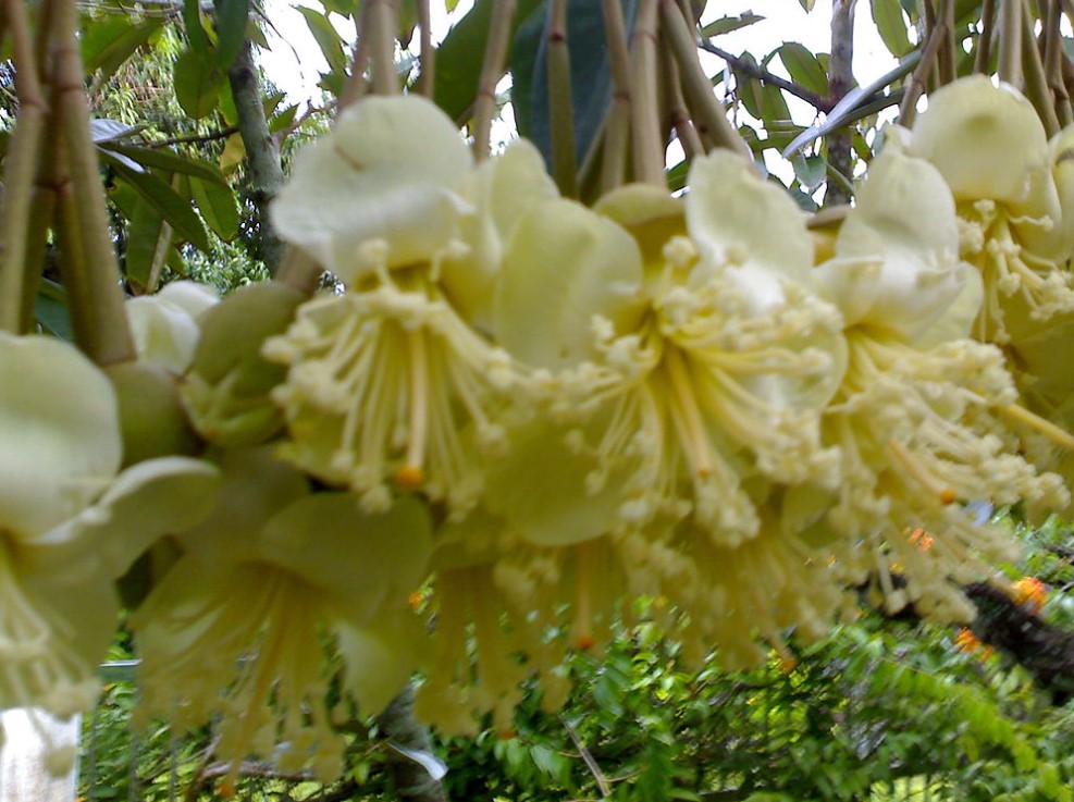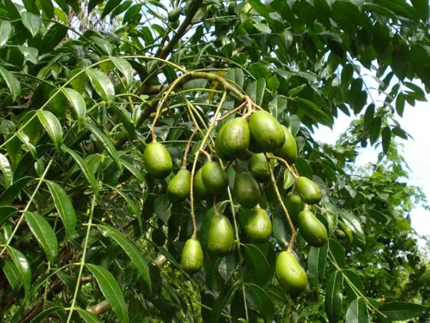 | Описание | Овалните плодове имат златист блясък. Те растат на гроздове и имат тънка, здрава кора. Вътре има жълтеникава плът, обграждаща твърда, шиповидна костилка. |