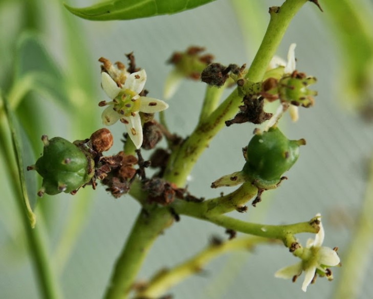 Когато плодът изсъхне, беленето му става трудно. Нормалните плодове се обелват преди консумация.