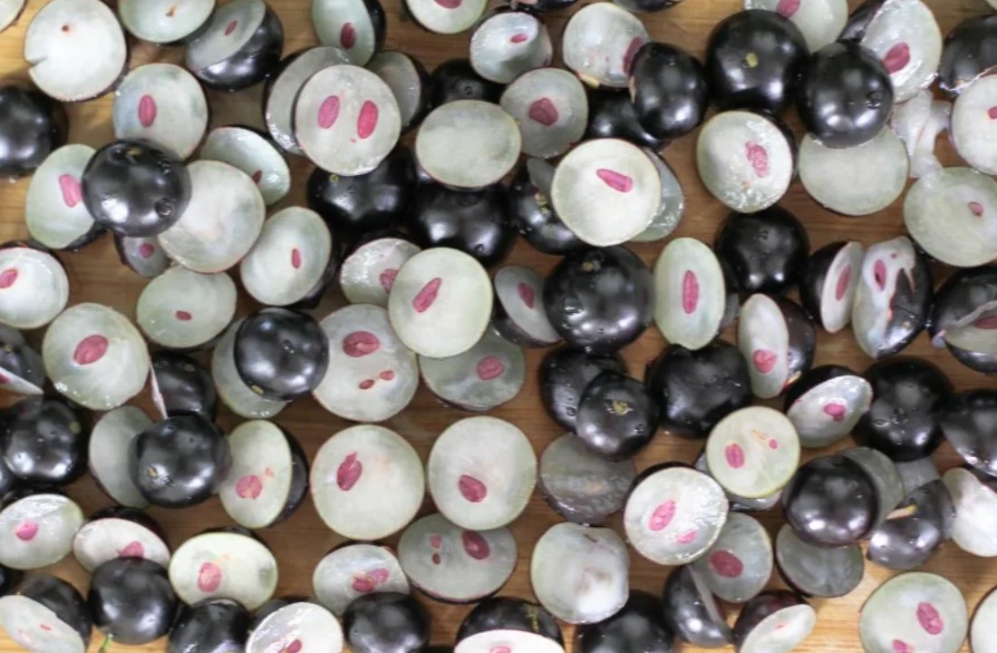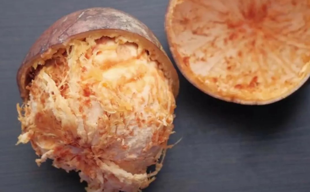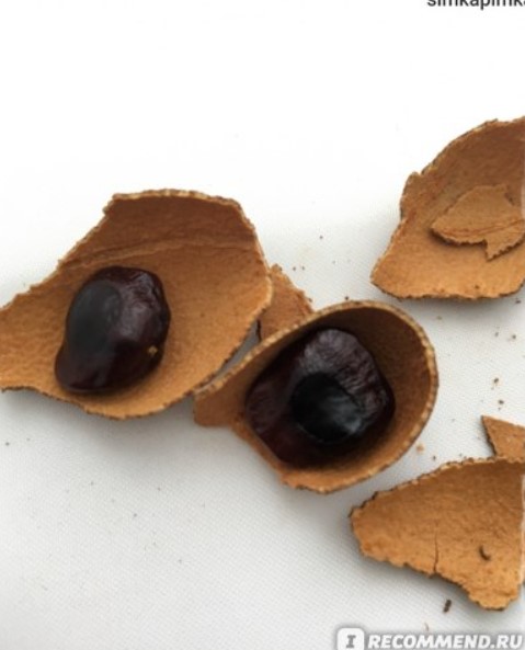 При натискане черупката се напуква и отдолу виждаме тъмна плът с твърди жилки.