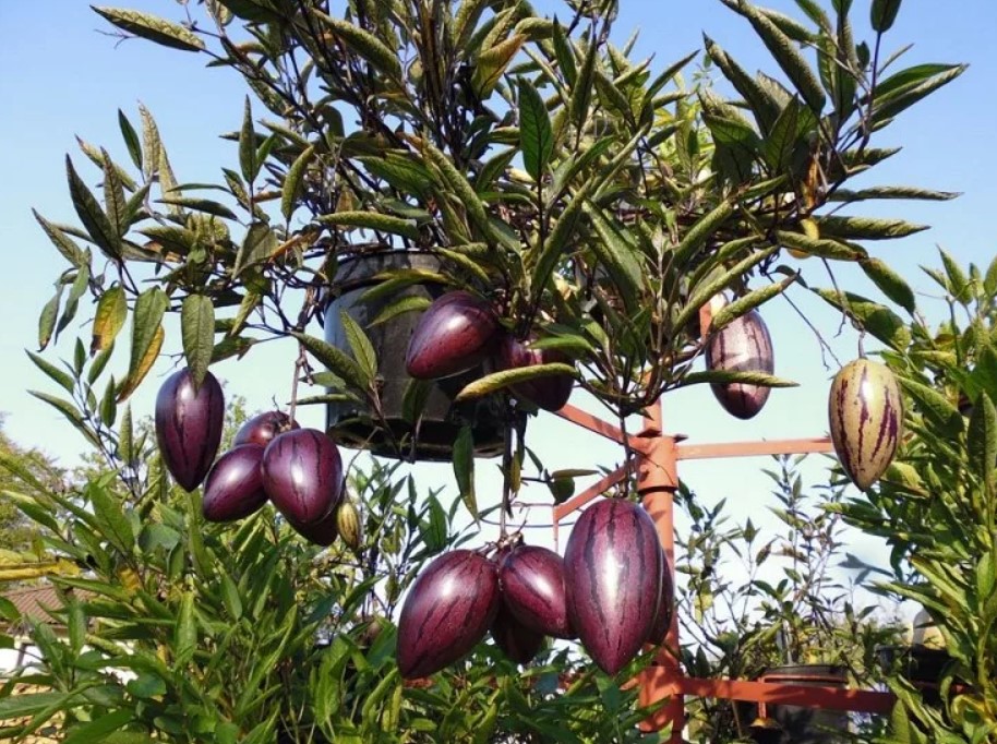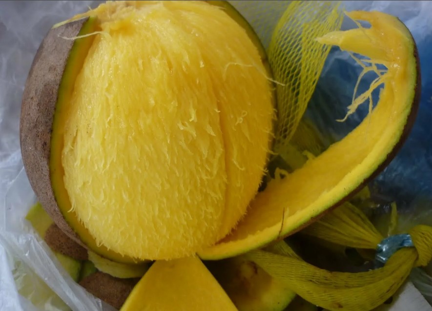 | Описание | Плодовете са с овална или сърцевидна форма. Те могат да тежат до 7 кг. Кожата е грапава и извита. Месото е кремаво на цвят. |