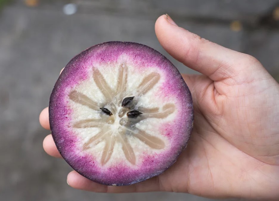 Вкусът е някъде между сини сливи, смокини и сушени ябълки. Сладко-кисел, приятен. Вътре има гладки, твърди семки.