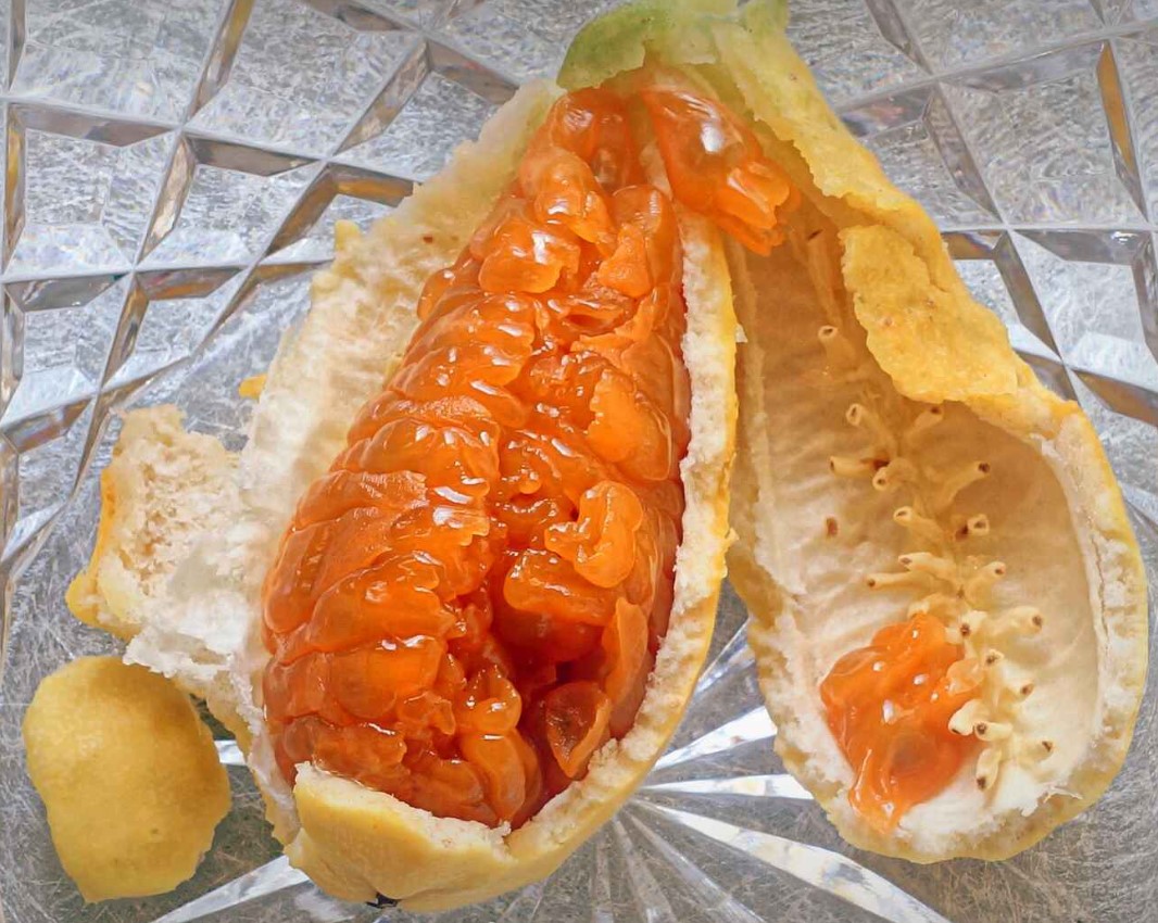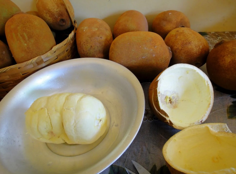 Когато узреят, плодовете са умерено меки на допир. Неузрелите плодове са твърди, докато презрелите се ронят лесно. За да се ядат плодовете, грубата външна кора обикновено се разкъсва и се отстраняват сегменти от пулпата, като семките се изваждат.