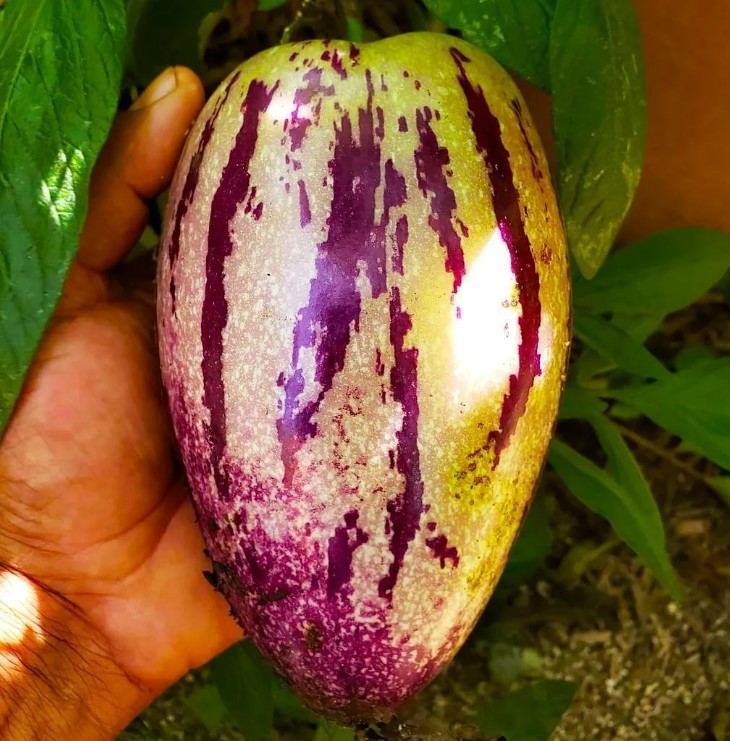 | Описание | Плодът има неравна кора с блатнозелен или розов цвят. |