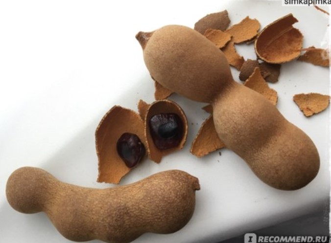 Какво е този необичаен плод? Това е шушулка (между другото, тамариндът принадлежи към семейство Бобови), която е светлокафява, гладка и приятна на допир.